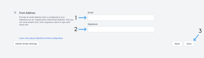 - Configure the “Email” to be the email you set up in “Organization-Wide Addresses”, which is what we will send the emails from.